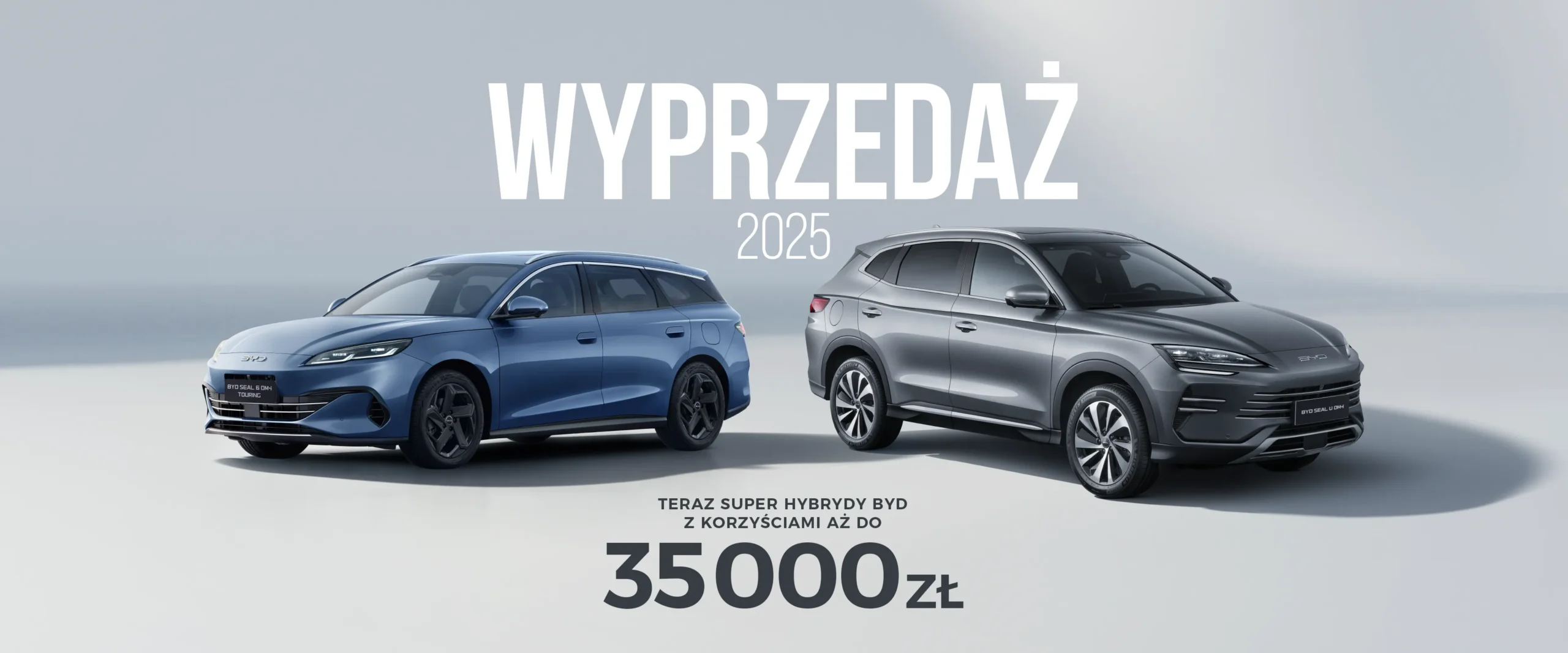 Teraz w ofercie WYPRZEDAŻ 2025 wszystkie modele BYD z rocznika 2025 w wyjątkowych cenach. Z BYD technologie przyszłości są bliżej niż myślisz. Oferta obowiązuje do wyczerpania zapasów – nie przegap okazji! Szczegóły i dostępność w autoryzowanych salonach – skontaktuj sie z salonem już teraz.